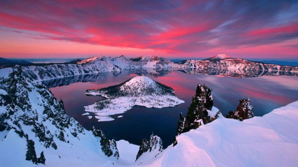 One of the most beautiful places to visit in Oregon is Crater Lake National Park. Crater Lake was formed 7,700 years ago when a violent volcanic eruption triggered the collapse of the towering volcano. At the National Park, you can swim in the lakes, go for a hike, view wildlife, camp, or just enjoy the natural beauty of the Park. Other scenic and breathtaking parks include Columbia River Gorge National Scenic Area, Cannon Beach, Mount Hood National Forest, Oregon Caves National Monument, and Oregon Coast Trail.