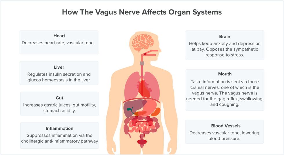 Not many people really know what the vagus nerve is so first, let me explain that. The vagus nerve is the longest cranial nerve in the body that regulates the gut and also affects the cardiovascular, immune, endocrine and respiratory systems. That means it's a pretty major nerve in the human body. So when that nerve is dysfunctional, you can imagine it can have some pretty ridiculous side effects.