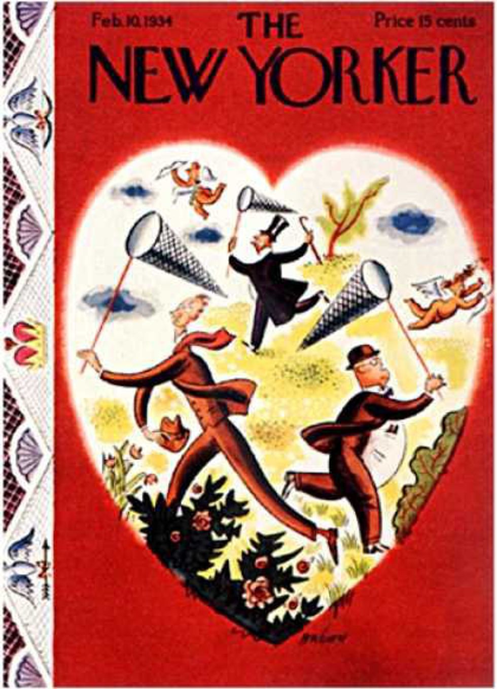 With Valentine's Day coming up, I got to thinking --- how has this holiday changed throughout the years? A good way to figure this out is to examine artwork from the past several decades to see how the holiday has been portrayed. Something I'm very interested in is the artwork on the cover of the popular magazine The New Yorker. Since its first issue in 1925, The New Yorker never fails to grace its cover with eye-catching artwork. Often, these covers offer social commentary, political satire, and references to current trends and events. While not every V-day cover displays an obvious message about the times, they are able to offer some clues as to how this holiday has been perceived and celebrated throughout the decades.
