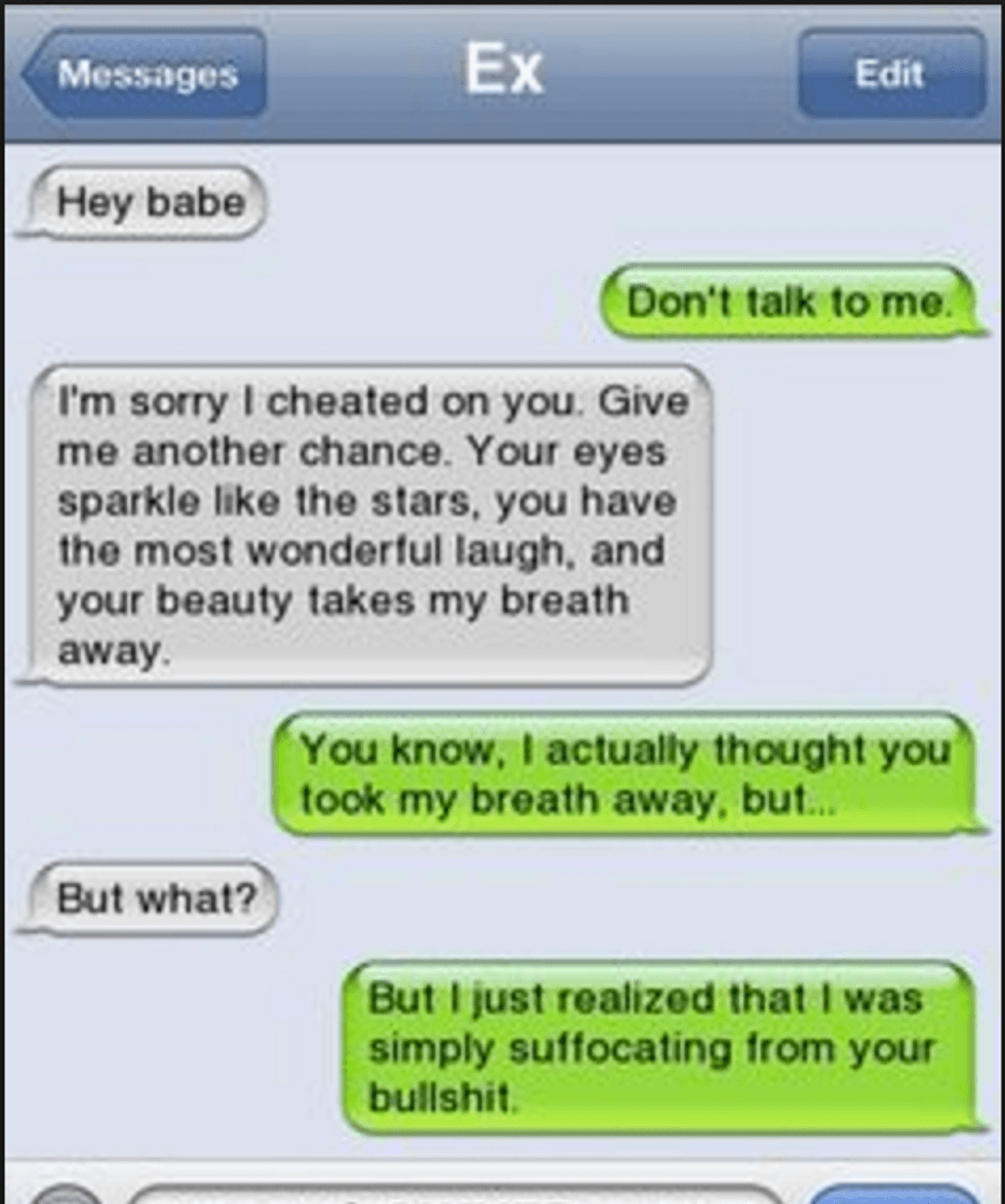 I may be lonely today but I'm never that lonely to talk to you again. There's no way that I'm touching you with a 10-foot pole today or any other day of the year.