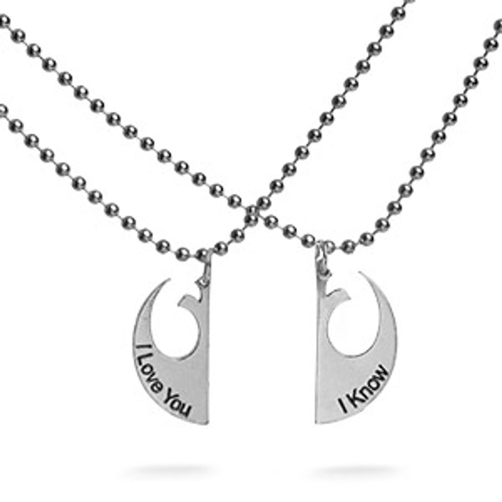 The "I love you" half for her, and the "I know" half for him. You can take a reminder of your love, and your fandom, wherever you go.