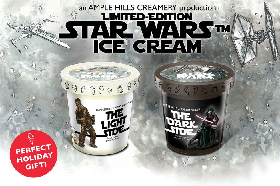This ice cream is from a creamery in New York that will ship anywhere quickly. The Light Side is made of marshmallow ice cream with Cocoa Krispies mixed in to represent the darkness within the lights, and the Dark Side is dark chocolate ice cream with pieces of white chocolate mixed in to represent the light within the darkness. Yum!