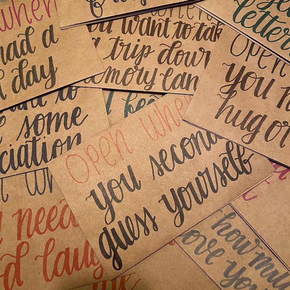 If you like the idea of sending letters but want more meaning behind them, these might be for you! Though they involve a few hours of work on your part, your partner will probably be delighted to read all of your original letters. From occasions like when they're feeling sick, coming to see you, and feeling hungry, your loved one will be able to open a letter made by you as if you're right by their side.