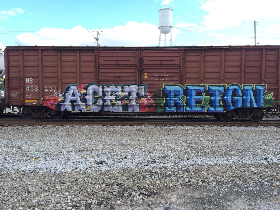 I grew up in a small town, and there is one thing you can be sure of in all towns in Georgia: train tracks run straight through the middle. I've spent so many hours of my life waiting for a train to pass, and that's what started my interest in graffiti. The cool thing about tags on train cars is that you have no idea where the artist is from. Trains can end up in so many different cities! I have seen so many gorgeous, elaborate, and detailed pieces on train cars.