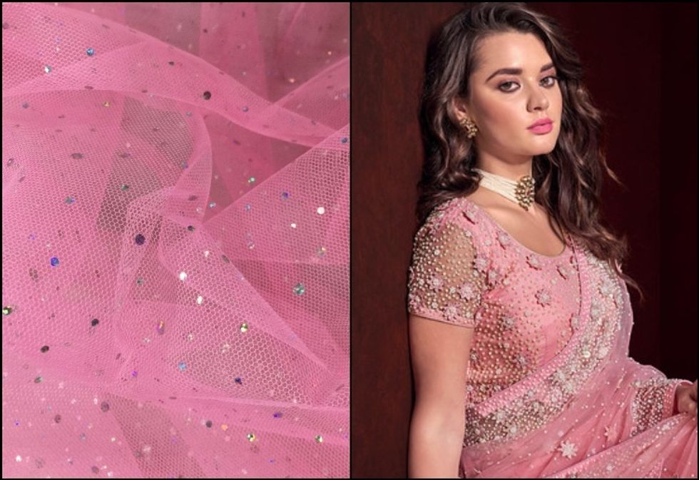 Velvet is a typical material that can make you look stunning in no time. It is soft as well as comfortable especially suitable for winters as it is a slightly heavier than other materials. A heavily embellished or embroidered sari can look amazing with a georgette or net sari. The sparkling shine and glossy texture of the velvet can make you look radiant and be the talk of the evening. This ethereal looking blouse is perfect for parties and other events.
