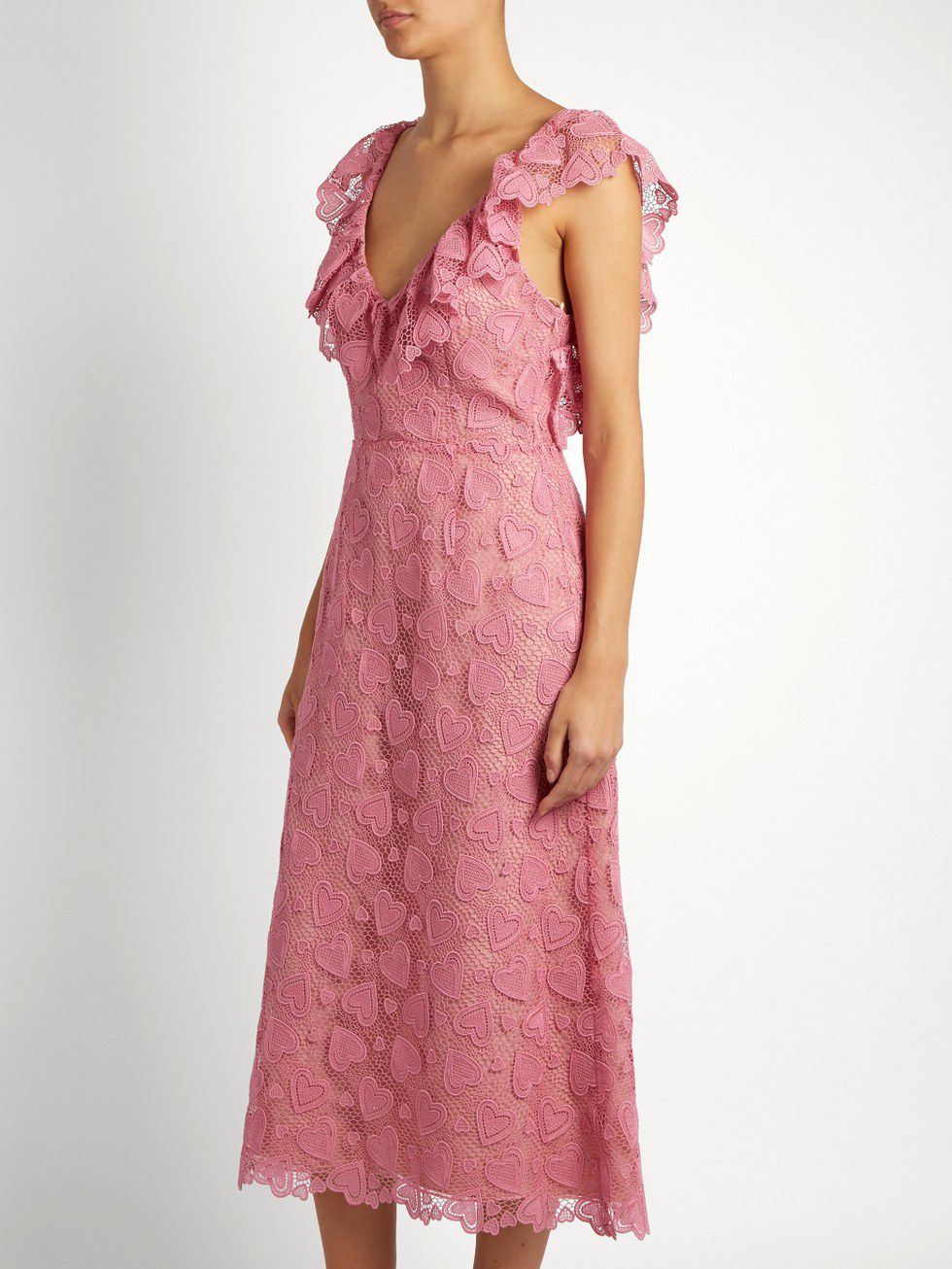 Yes, I might be living in a fantasy thinking about this romantic Miu Miu dress, but I just want to throw this on and go to a fabulous Instagram-worthy Valentine’s Day brunch. The heart shaped detailing is just absolute perfection. The ruffled V-Neck is so sophisticated and plain gorgeous. I think I want this dress to be my Valentine.
