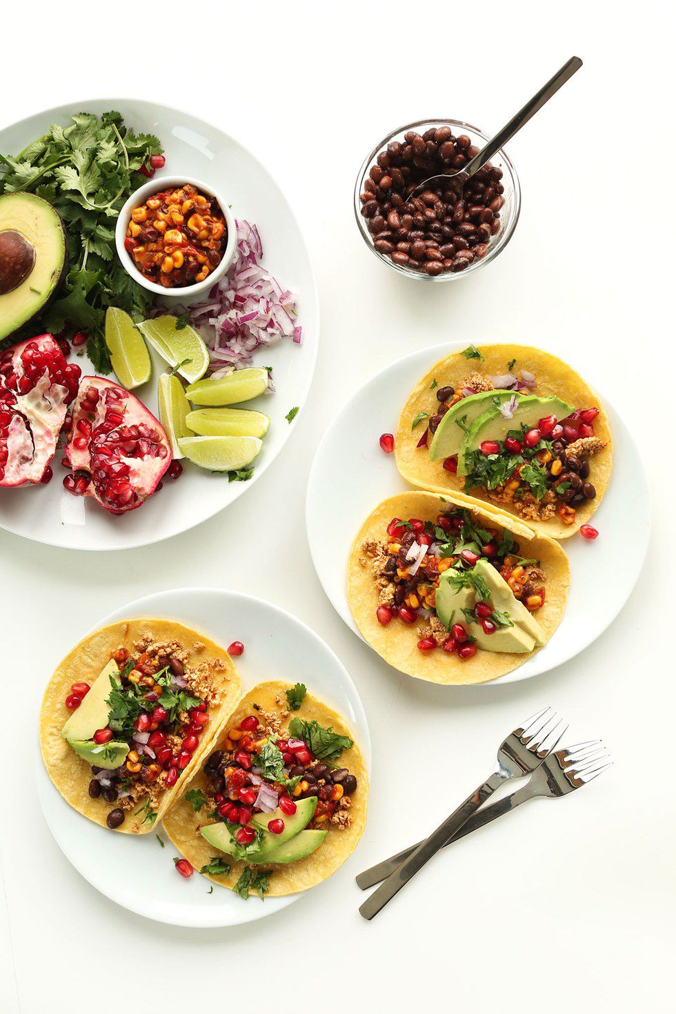 - To serve, warm tortillas in the microwave wrapped in a damp paper towel or in a 250 degree oven (optional). Top tortillas with tofu scramble, black beans, onion, avocado, cilantro, salsa, fresh lime juice and pomegranate arils (or desired toppings).