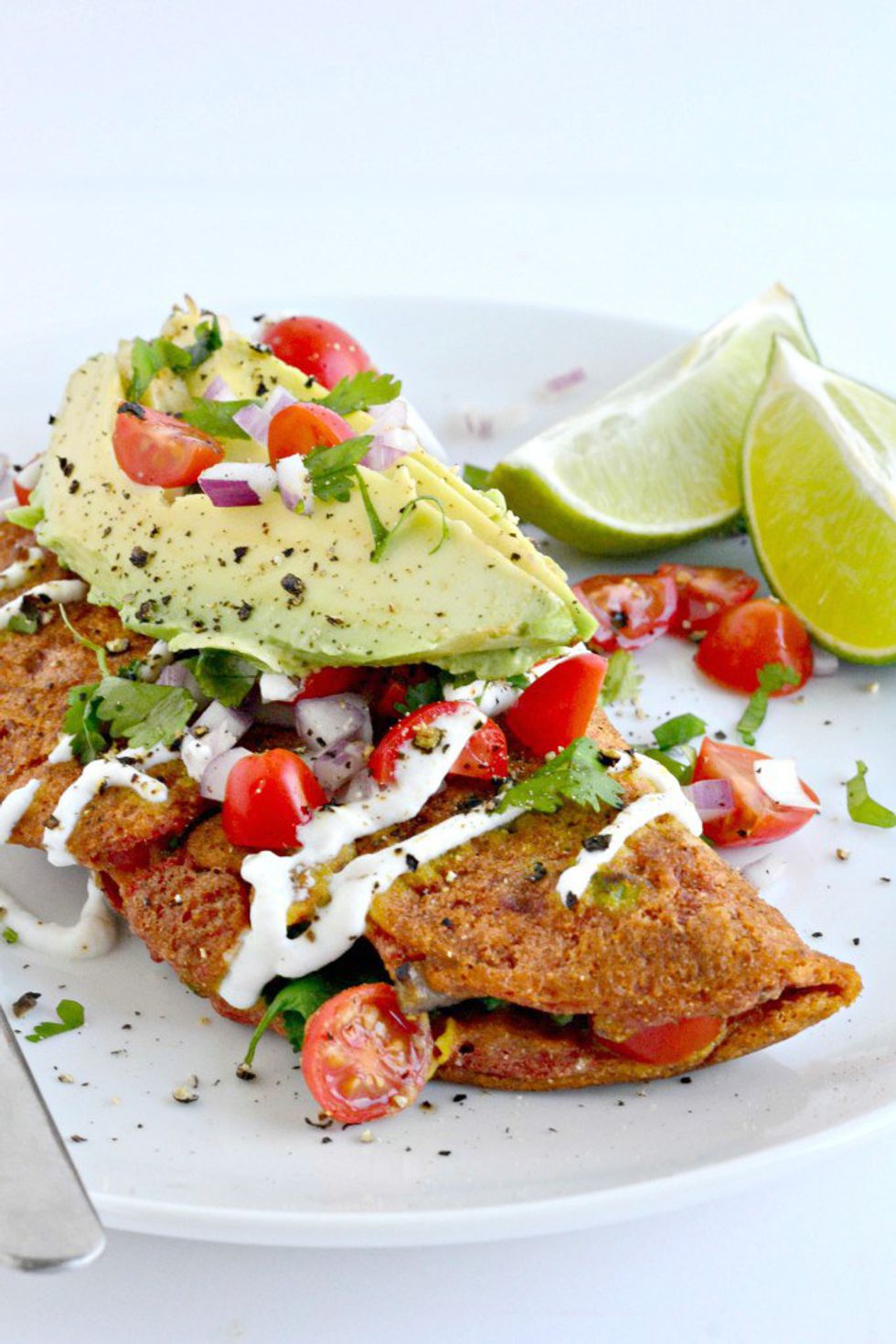 Simple, 30-minute vegan breakfast tacos with a spicy tofu scramble and hearty black beans topped with veggies, creamy avocado and pomegranate arils! Healthy, filling and so delicious.