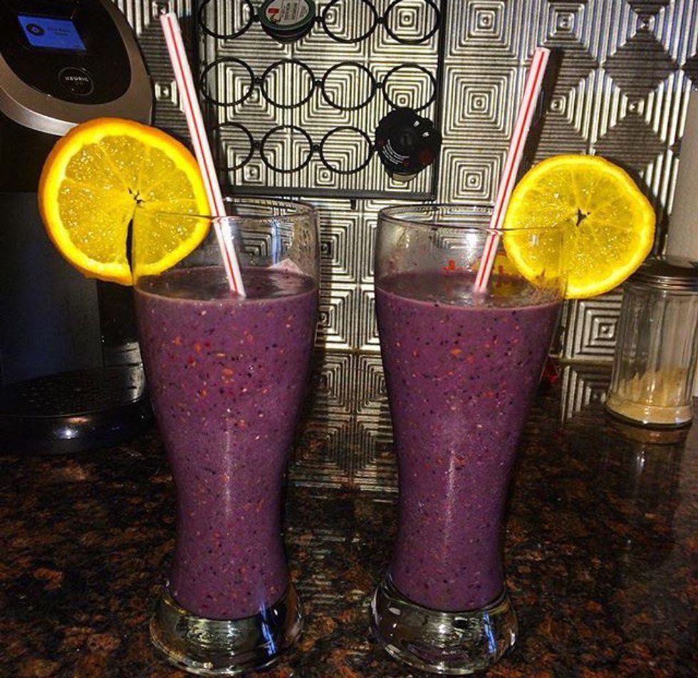 Another quick breakfast I gravitate towards is a huge fruit smoothie! In these, I typically put frozen mixed berries, frozen bananas, almond milk, water, kale, spinach, hemp hearts, chia seeds and flax seeds. This breakfast is kind on the digestive system and it's a good way to get those greens in! I drink these almost every single day, even if it's not for breakfast. They're that good and they make me feel so amazing and energetic.
