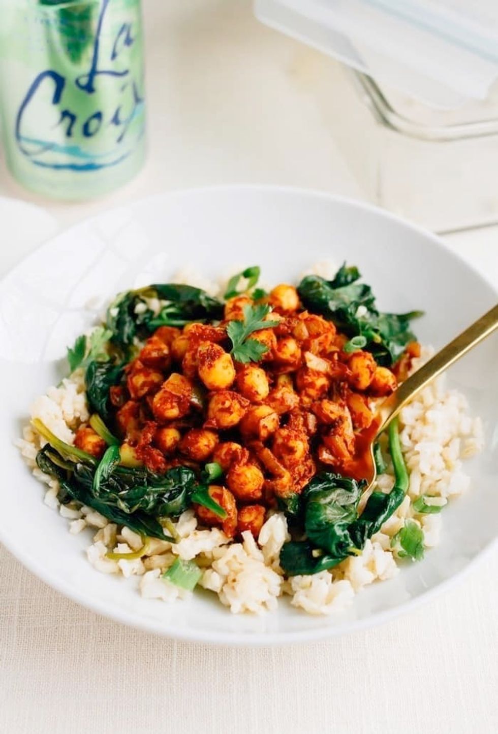 This recipe is a great recipe if you're in a super-rush. Grab four cups of your favorite veggies, some spices, and rice, and be on your way. Store in microwave safe bowls with lids to make this meal prep, keeping the rice and vegetables in separate bowls to make sure they don't get soggy.