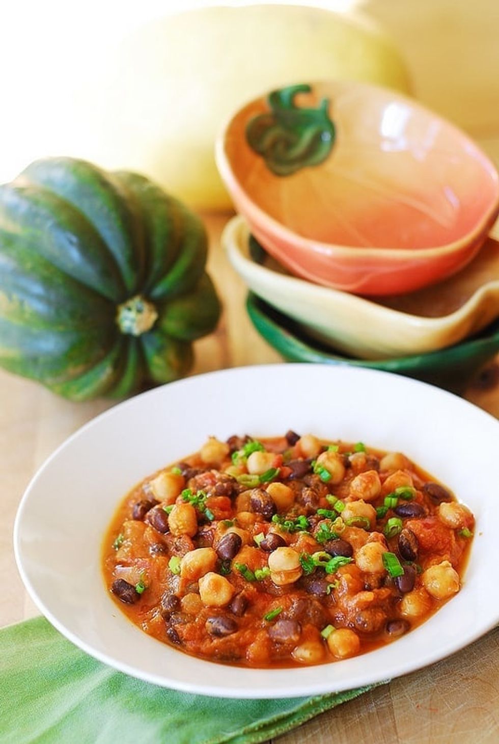 Pumpkin Chili with Black Beans and Garbanzo Beans
