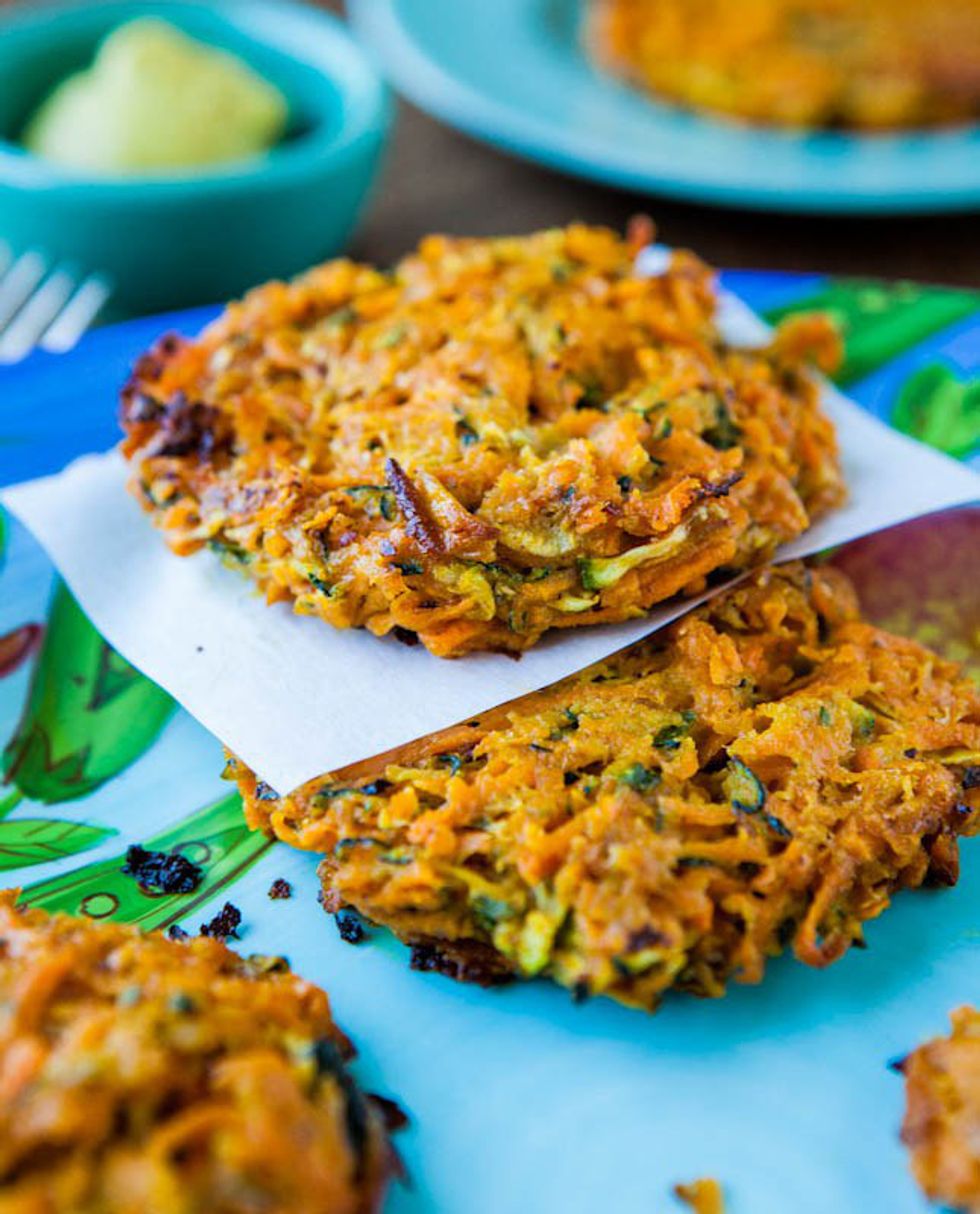 These fritters are perfect with the mustard sauce of the recipe or just plain old ketchup. The crunch on the outside of each fritter is to die for. Throw it on a bun with some lettuce and tomato and call it a veggie burger. Although the original recipe requires an egg, there is a vegan option using an egg replacement.