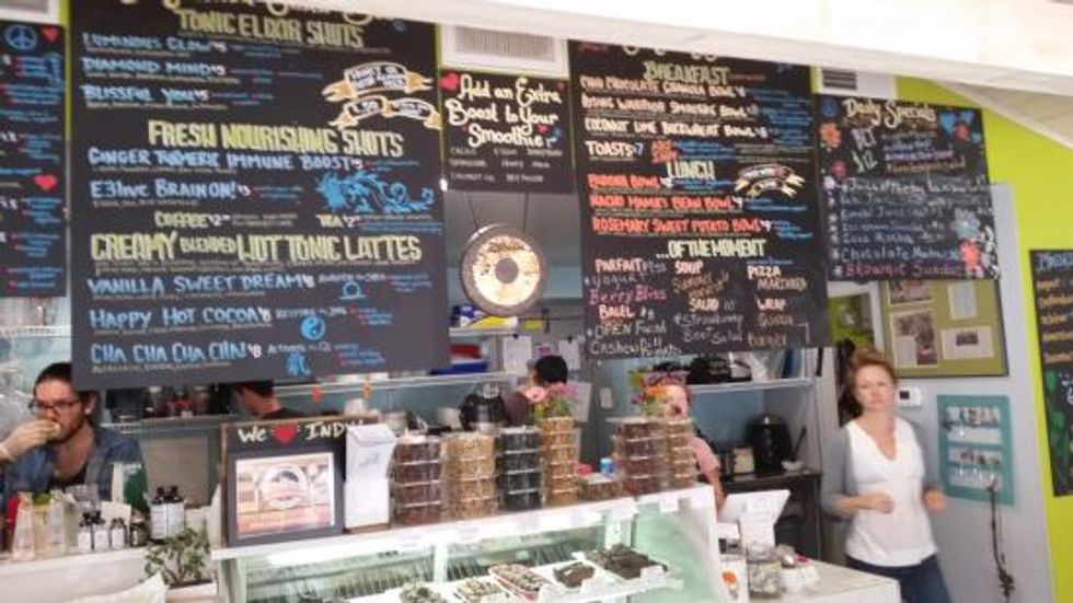 Ezra's is a local, green cafe that serves only 100 percent vegan, plant-based food (also GMO-free, gluten-free and processed sugar-free). Their green mission is to recycle and compost as often as possible, and the cafe composted over 5,000 gallons of scrap food per year.