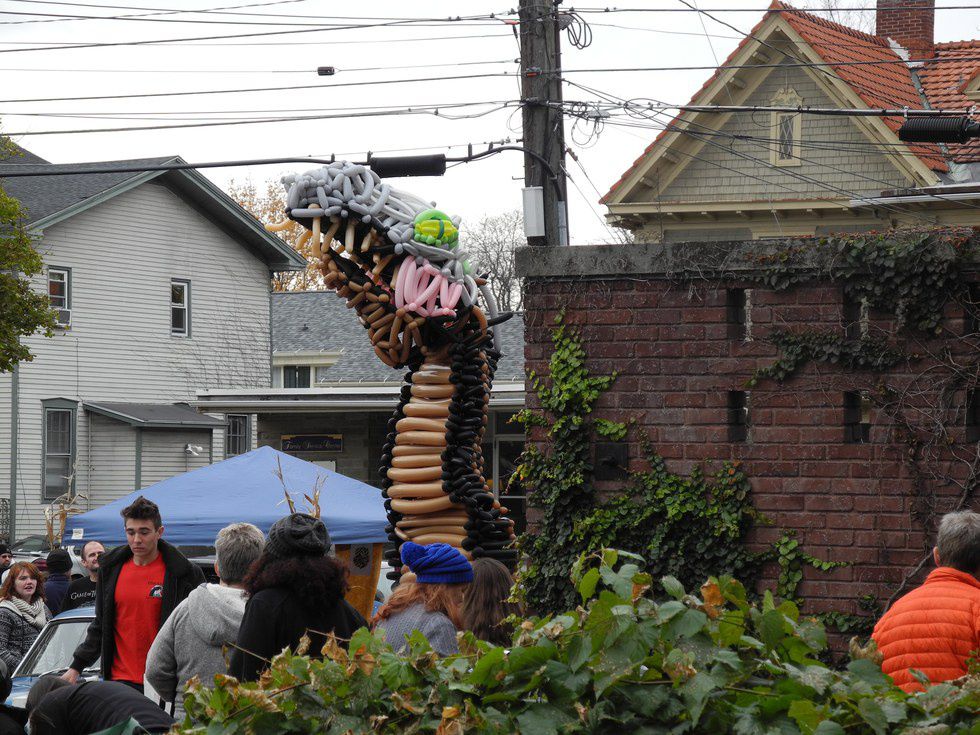 This weekend was like a dream come true. The streets of Ithaca really transformed into an amazing and enchanting wizarding world. Seeing everyone dressed in their robes and scarves and dressed as their favorite characters was a really great sight to see. Especially seeing the joy on the young kids faces as they saw all of the things they have read about or seen in the movies come to life! Watching their faces turn into smiles when they saw the magical creatures, the Weasley's flying car, and the dragon on top of the food trucks. Not to mention there was a huge basilisk terrorizing the town!