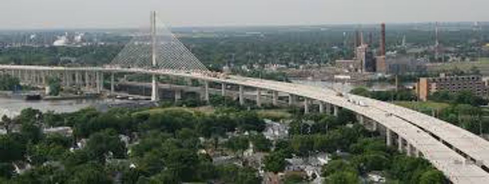 The Veteran’s Glass City Skyway is in Toledo, Ohio, and it goes across the Maumee River. The Maumee River is a direct route into Lake Erie.