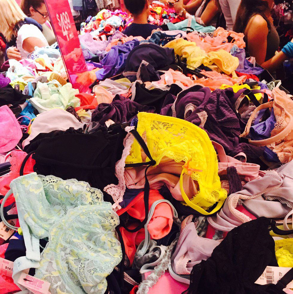 You won't believe what you will find if you actually take the time to search every bin and under every rack. It is virtually impossible for retail workers to keep everything neat and organized during sales like this. Items fall and get hidden behind racks (sometimes intentionally) and sizes are constantly being rummaged through. Make sure you aren't on any time constraints, there's no shame in spending 2 hours in Victoria's Secret!
