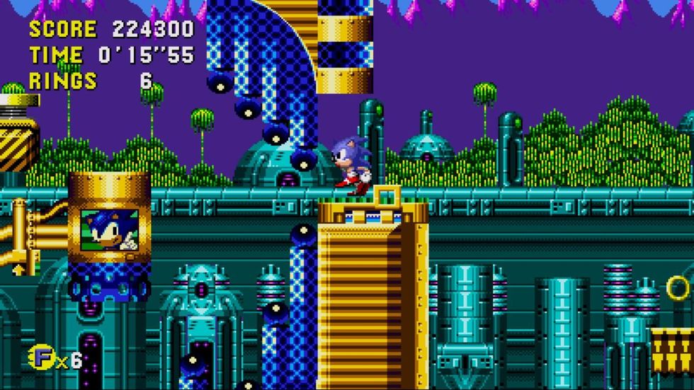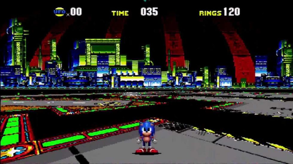 Now this is where the Time Stones come into play, since in order to get the good ending, you can collect the Time Stones by going to the past and find a machine, destroy it and automatically create a good future with that zone. Like in Sonic 1, you can collect 50 rings or more, keep them without getting hit and go through a giant ring where you’ll access a special stage. The special stages are incredibly trippy. It’s a 3D world (using the Sega CD’s capabilities) in which you have to simply bop UFOs, bop them all to get the Time Stones. But there are many obstacles, heck, even the water will quickly drain the amount of time taken to break the UFOs. I actually like these special stages, much better than Sonic 1 & 2…well I mean the special stages are great in the remastered version, because the original version is horrendous gameplay-wise due to the chuggy frame-rate and you put more pressure on the controller to move to your preferred area, and what’s thy the remastered port does it right. I’d recommend destroying the machines however to avoid possible stress, but if you like exploration in a Sonic game, then this will be great for you. There's only one thing I hate about these special stages... Because you are collecting Time Stones and there's no Chaos Emeralds in this game, you won't get the ability to play as Super Sonic.