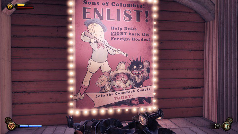 Bioshock Infinite released in 2013, made by former studio Irrational Games. They created this world to be modeled around the culture of the early 1900’s, which also includes racism. Instead of having the game making their players figure out this sense of racism, it is actually thrown at the player’s face. In a world today where racism and racialism have construed a sort of controversy, it’s amazing that a video game heavily depends on it.The culture of Bioshock revolves around religion and race, where people who are accepted into this world have some sort of purpose. The world you are in is called Columbia, which is based off the real city of Columbia in South Carolina. The developers included traits of Columbia like racism to create one of the strongest conflicts in Bioshock Infinite.
