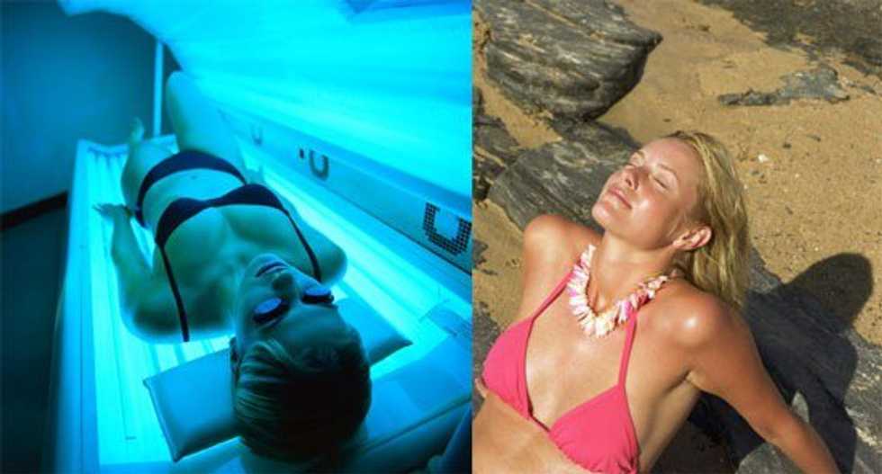 Not to be too blunt, but we go to the tanning bed because of our vanity. We don't want to look pale, less attractive, or whatever boost of confidence tanning gives us. Consider this -- what happens to that vanity when you have a scar (or multiple scars) from surgery to cut out the cancer cells? What happens to that vanity if, heaven forbid, it's to the point where chemo and radiation might be necessary? Is it worth that risk?