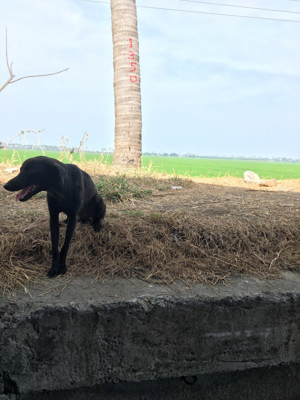A sad dog who was looking for food. Unfortunately, a common sight in India.