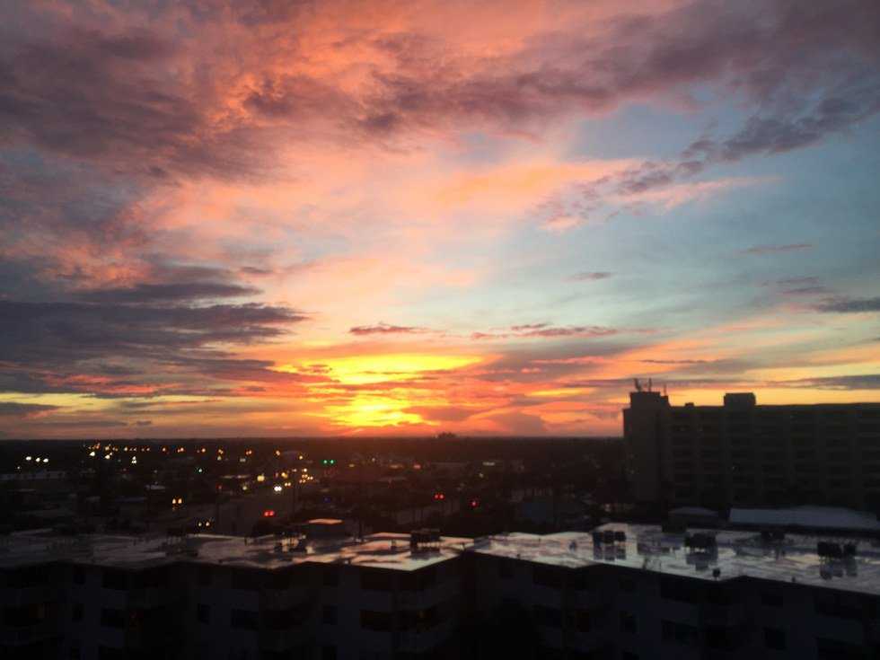 I stood staring out the window, three stories up, in complete awe of what I saw. Deep orange, soft pink, and royal purple all coated the clouds with their wondrous beauty. The colors I could see were all incredible, but I knew there were more.