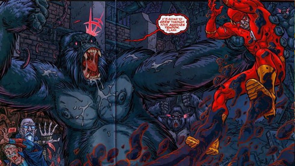 I mean c’mon he has the power of freaking MIND CONTROL, I mean how cool is that? Being a giant gorilla, Grodd is already capable of easily picking someone off the ground and removing a limb or two, but granted his awesome telekinetic powers he could just force them to do whatever he wants them to or use his telepathy to incapacitate his enemies. In the Flashpoint timeline, Grodd even goes on to help create and eventually rule over “Gorilla City”, which is set up like a Planet of the Apes situation on steroids. Grodd has made numerous attempts to take over both the world and individual cities, but one of his most memorable attempts is when he creates a device that turns humans into gorillas, thus turning the enirety of the Justice League into gorilla heroes!