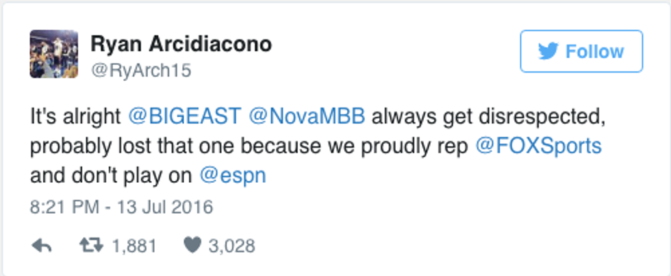 Though fan voting plays a role in the selection of ESPY winners, recent history may have soured ESPN from giving any Big East institution more than minimal recognition. How does one of the greatest buzzer-beaters of all time on such a massive stage go unrewarded? The answer may be due to the Big East Conference’s fallout with ESPN in 2013 when the league slimmed to ten members from sixteen and signed a long-term television deal with FOX.