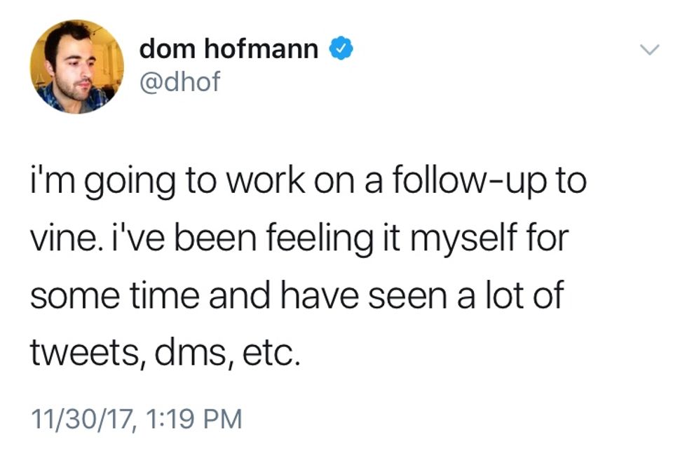 I recently saw a tweet from the creator of vine, Dom Hoffman, depicting what looks like the logo for the comeback of the beloved app Vine. Another tweet he recently posted confirmed the creation of the new version of the app everyone so dearly misses. People have been tweeting, messaging, and posting about how much they miss vine ever since its tragic end. That may be about to change.