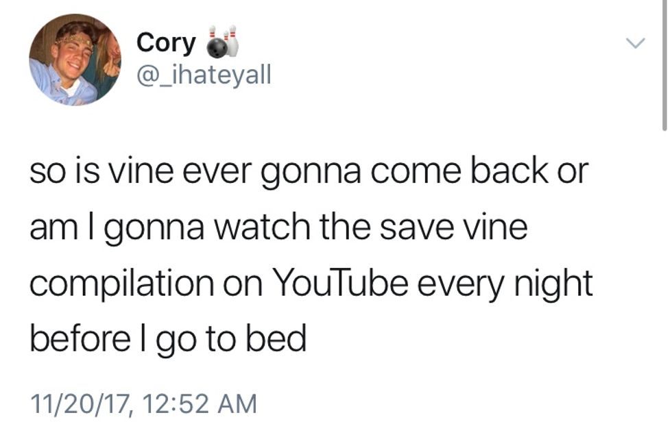 But... in honor of the comeback of Vine, here are some of my favorite vine-related tweets: