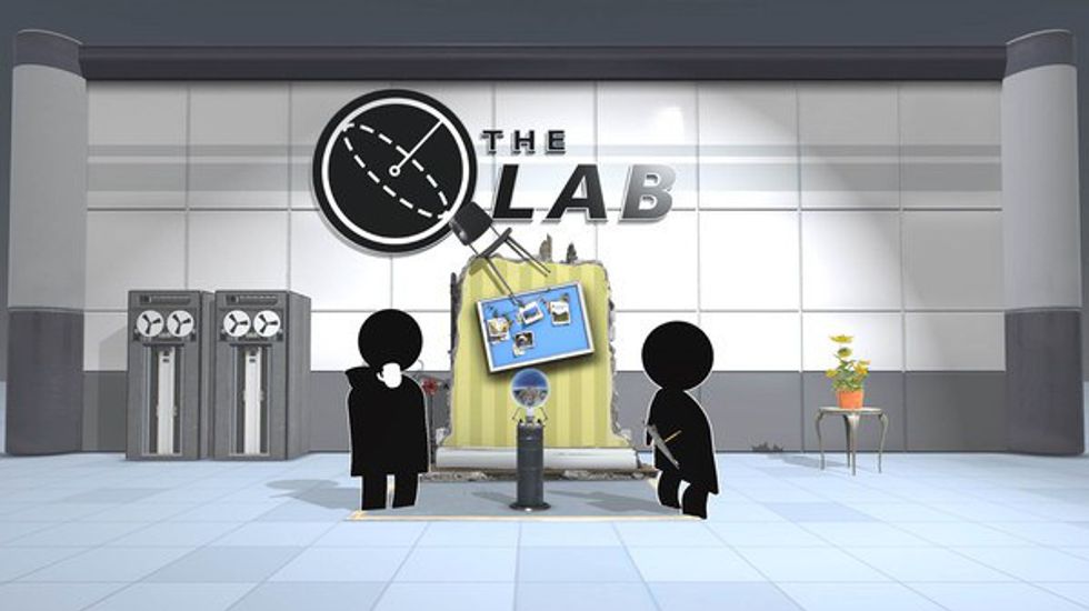 The first thing I was greeted with when I left my place in the cosmos was a white, relatively empty room. I was assured that there was supposed to be noise and, after a brief period of technical difficulty, I found myself back in that room. The furniture broke away from the floor with a rumble and disappeared beneath the floor. Finally, a robot awoke behind me and taught me how to create balloons, teleport and shoot lasers. While I was confined in this room a group of what I presume to be civilians entered. Although I could not approach them, I did create balloons for them. I then fired lasers at them. They fled and my friend and operator told me that I was done with the tutorial. It is then that a fact occurred to me, I came from the cosmos and had limited god like powers over this world. I could be a benevolent god or a malevolent one- really it was my choice. Then, I entered “The Lab.”