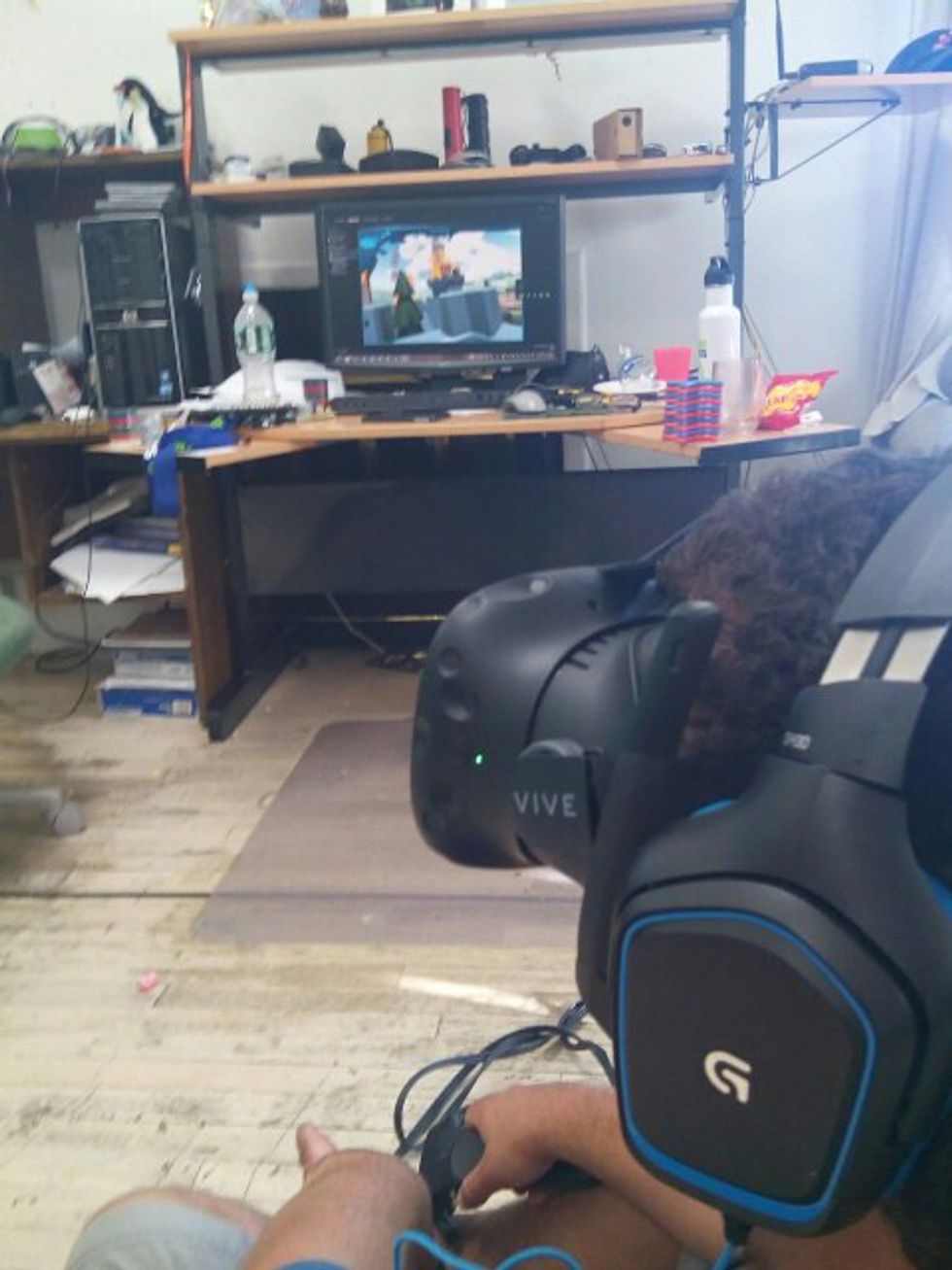 Next up was a friend of mine. As our Operator, Mike, put the headset on our friend, Matt, he nearly jumped back a foot upon finding himself among the stars. I believe he thought himself an astronaut for a moment. He was allowed to skip the tutorial and was jumped straight to “The Lab.” After a few minutes of total indecisiveness, split up by his petting the dog that run around the level several times, he settled on trying his hand at archery. By which I mean he used the same hand he held the bow with to also knock and fire his arrows. He may have been the single worse archer I have ever seen. Still, I salute the effort and as his castle door was broken down by the people he was supposed to shoot with arrows, the world around him burst into flames. He then simply sat down and stared forward announcing “some men just want to watch the world burn”.