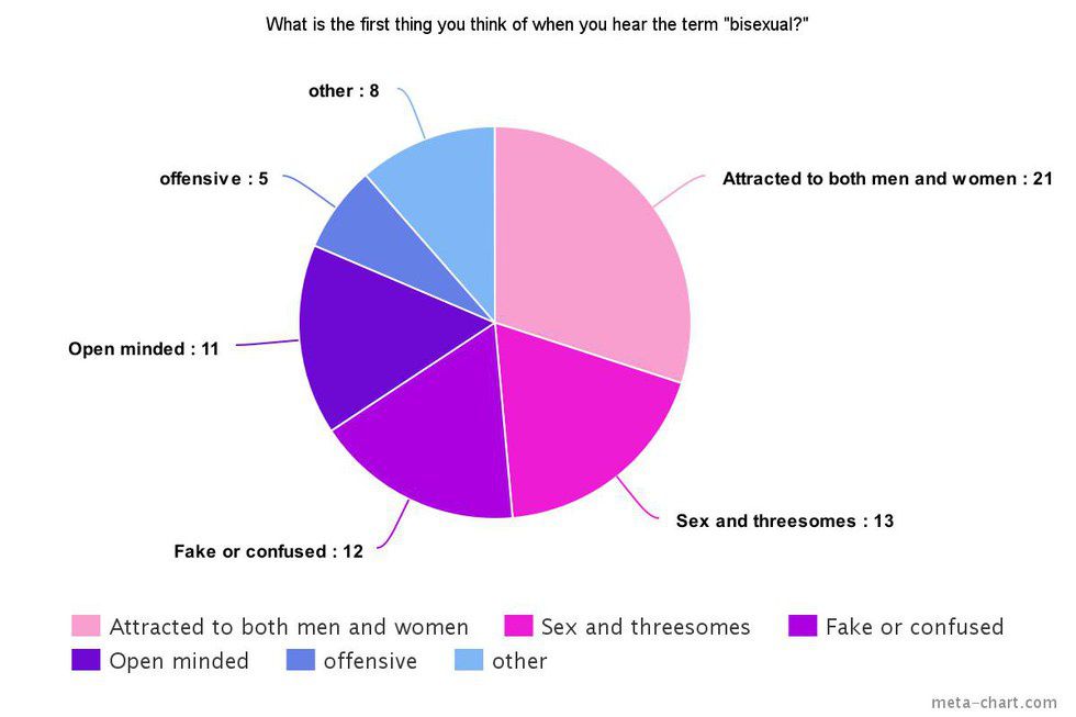 So in preparation for one of my favorite days of the year, I decided to create a survey with an open answer text box and one question: What is the first thing you think of when you hear the term bisexual?