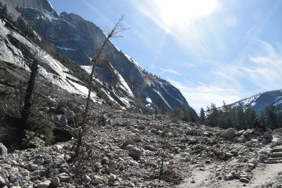 The Valley Loop Trail is approximately 13 miles long and is the best way to see all of the park from the Valley floor. Although it's no Half Dome, the hike is mildly strenuous, keeping your heart rate up so you don't get too cold. There are also plenty of detours you can take if you want to explore an area further. Since I am horrible with directions, we pretty much stayed on the path, but if you get lost, there is a free and easy to find shuttle bus service that can bring you back to your car.