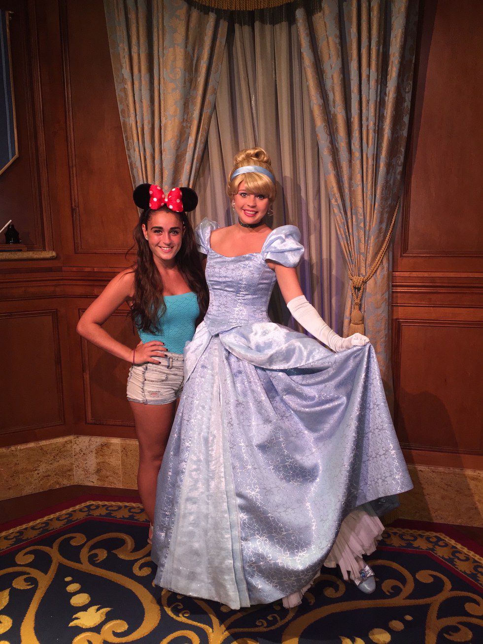 Roaming around the Magic Kingdom, my family and I were pretty sure Sleeping Beauty wasn't there that day. We thought she was in Epcot, and my mom got pretty sick of hearing her 21-year-old daughter complain about not being able to meet her favorite princess, a character from a cartoon nonetheless. Defeated, I trucked along when we got fast passes to meet Cinderella. I'll admit, I was pretty excited anyway. I'd always liked Cinderella growing up; she was probably my favorite after Sleeping Beauty.