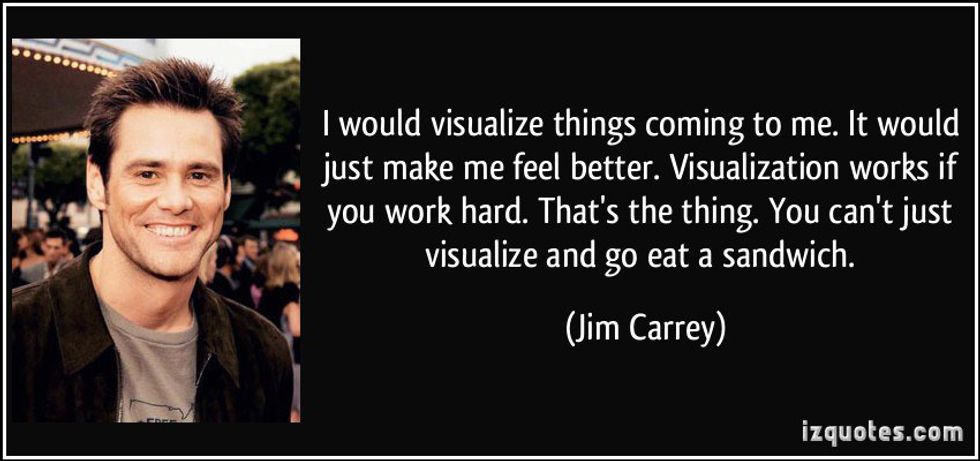 Jim Carrey was right, visualization is also an added comfort for when you're feeling the weight of the world on your shoulders. It helps you push through that hard exam you have or the day of work at the crappy job you work to put yourself through school. Visualizing what you want helps determined what will make you the most happy in your life.