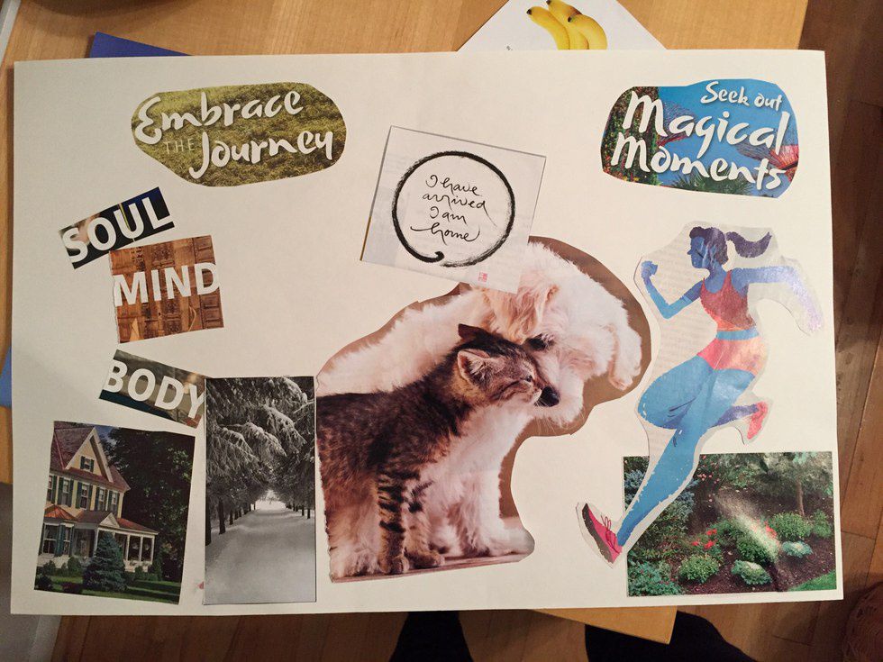 For example, the things I put on my vision board was things that I personally wanted for my future. It was more tangible, goals I wanted to achieve or places that I wanted to live. I chose pictures that would help inspire me to stay fit and active while also expanding my mind at the same time. I had pictures of the kind of house I wanted to live in and the pets I wanted to live with me in the future.