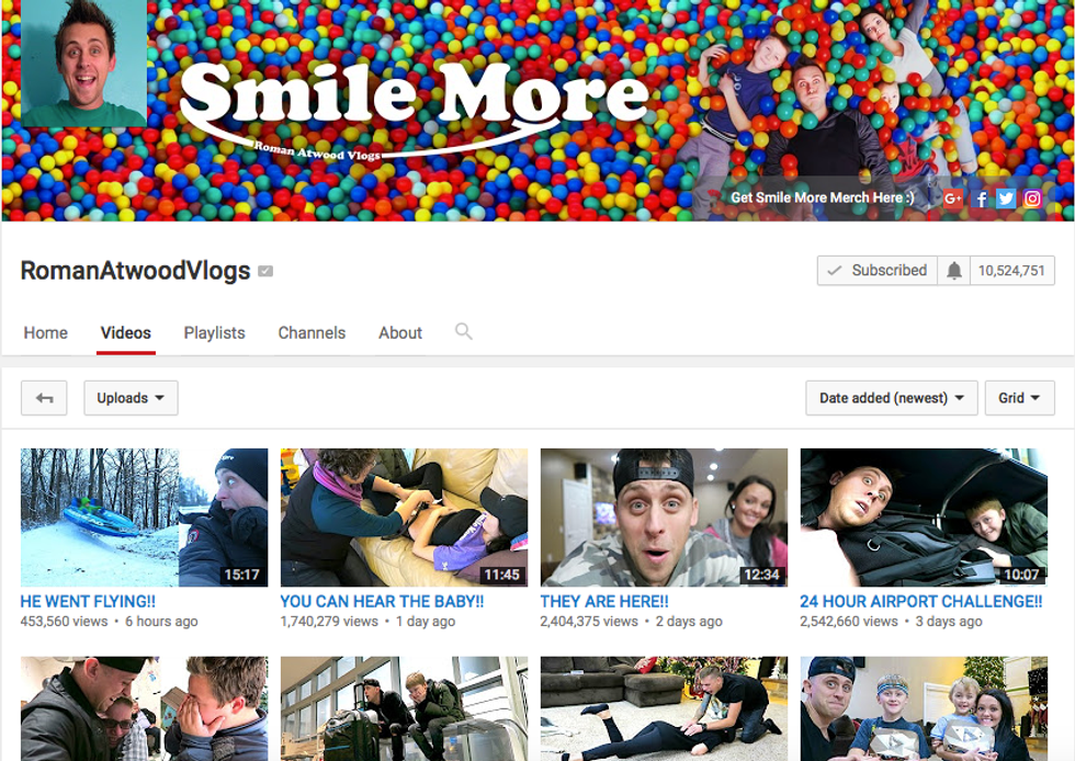 This is a family that has done many other things than just upload a daily vlog every day. Roman started a store called Smile More and is run by him and his wife. He has also made a movie with other pranksters and went on tour. Everyday this family has something interesting or fun to do and is shown on the vlogs. This is one of my favorite vlogs that I watch. Link to their channel here!