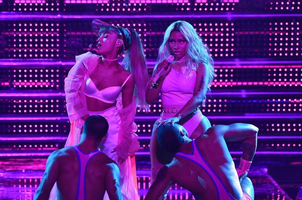 After the opening came Ariana Grande and Nicki Minaj (my personal favorite) performing Ariana's new single "Side to Side." The whole message of the song is something quite X-rated, but in a world of male dominance and patriarchy, it reminded us that women too can be both a boss and sexy simultaneously without any need for sexist insults to be hurled their way.