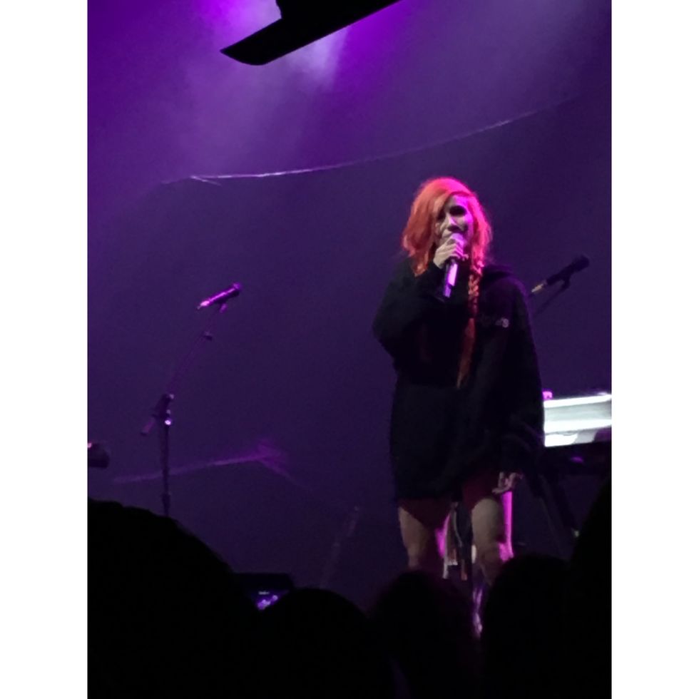Once Flint Eastwood toke stage, our volunteering started to come to an end. We talked to a few people looking at merch and concessions in between her set and Lights's, but for the most part everyone was beginning to join the crowd.