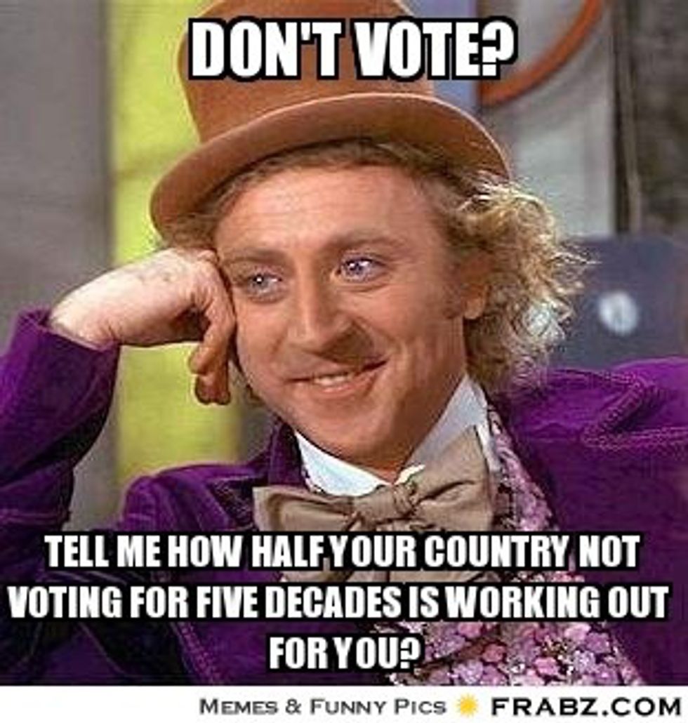 I understand that voting doesn't quite provide as much satisfaction as other activities that can consume the day such as YouTube browsing or video games or murder (I don't know you, I don't know your life). But it is important as a voting eligible individual to help in determining who will be in charge in the government. If you can be so passionate about results of an election AFTER voting has passed, why not try influencing the result BEFORE it is to late to do anything about it???