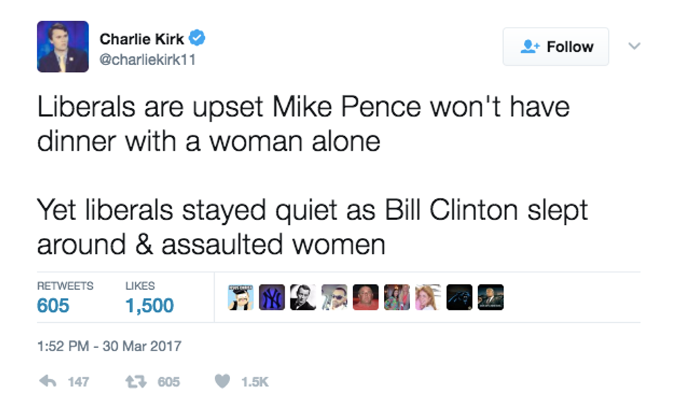 Evangelist Billy Graham actually is the one who introduced this idea in 1948. Billy Graham said that he would not travel, meet, or eat alone with any woman other than his wife. Many different religious figures have followed the “Billy Graham Rule” and have taught it to others. So again I ask, why exactly is such a huge deal being made out of Pence doing it? He’s definitely not the one who came up with the idea, and he’s not the only one to ever follow it.
