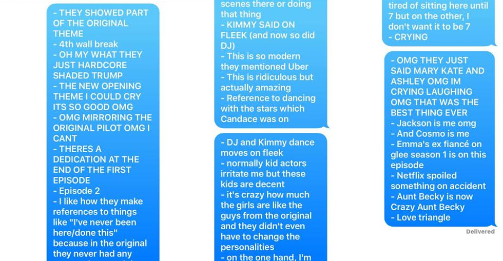 Would I recommend this show to someone who has never seen the original "Full House?" No, I would not. As much as I love this new series and want it to be seen by everyone, it very much depends on references to the old show. There are catchphrases, love interests, and inside jokes that someone would only understand if they’ve seen the original. However, I would recommend that if you have any interest in watching "Fuller House," you should definitely rent the original eight seasons and start there so that you can fall in love with the characters and then see their lives 29 years later on the Netflix Original.