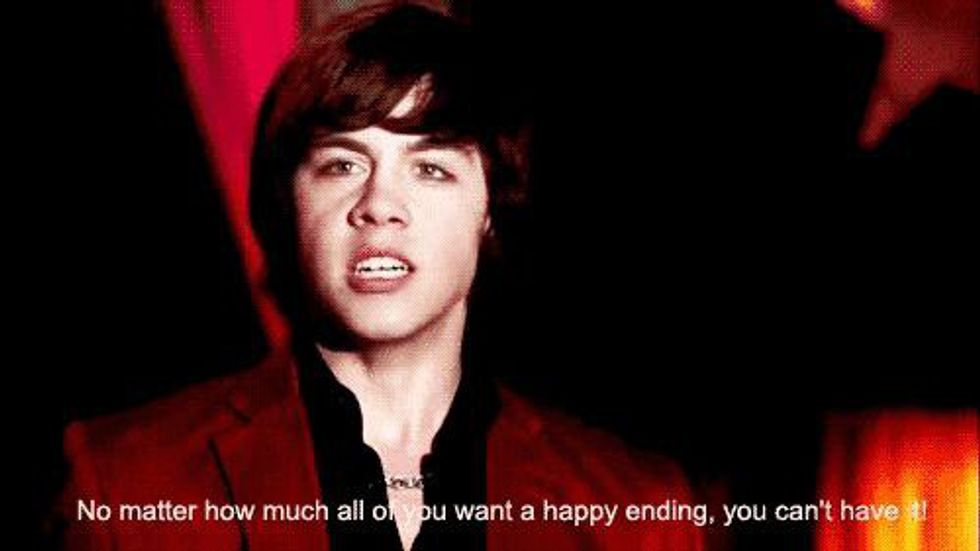 "No matter how much all of you want a happy ending, you can't have it! I tried to write one, but it's impossible. I rewrote and rewrote, but things kept changing. And I hurt people, and I...I knew they were hurting, but I didn't stop...because your mind tricks you...it tricks you into thinking that things are fine, well they're not fine, nothing's fine, it's all WRONG! I'm all wrong. So that's it. There's no happy ending."