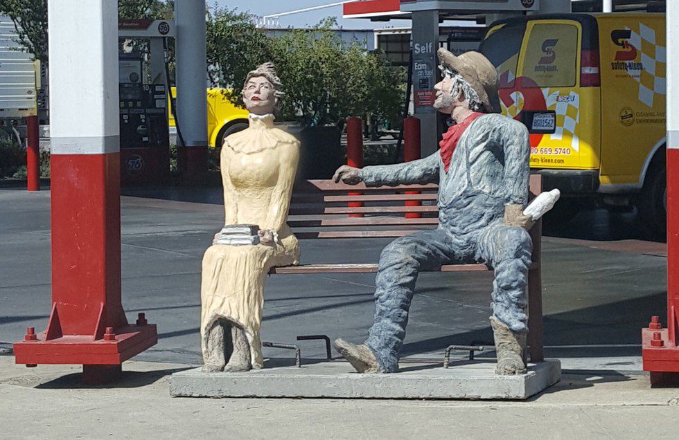 Just recently I was making my way up the West Coast, venturing from Phoenix, AZ up to Portland, OR by car. As you can imagine, this trip would require many gas station stops to refuel and stretch our locked limbs. However, pulling into a Fresno, CA gas station was not just like any other pit stop during this trip. To my disgust, I noticed this appalling statue placed at the front of the gas station.