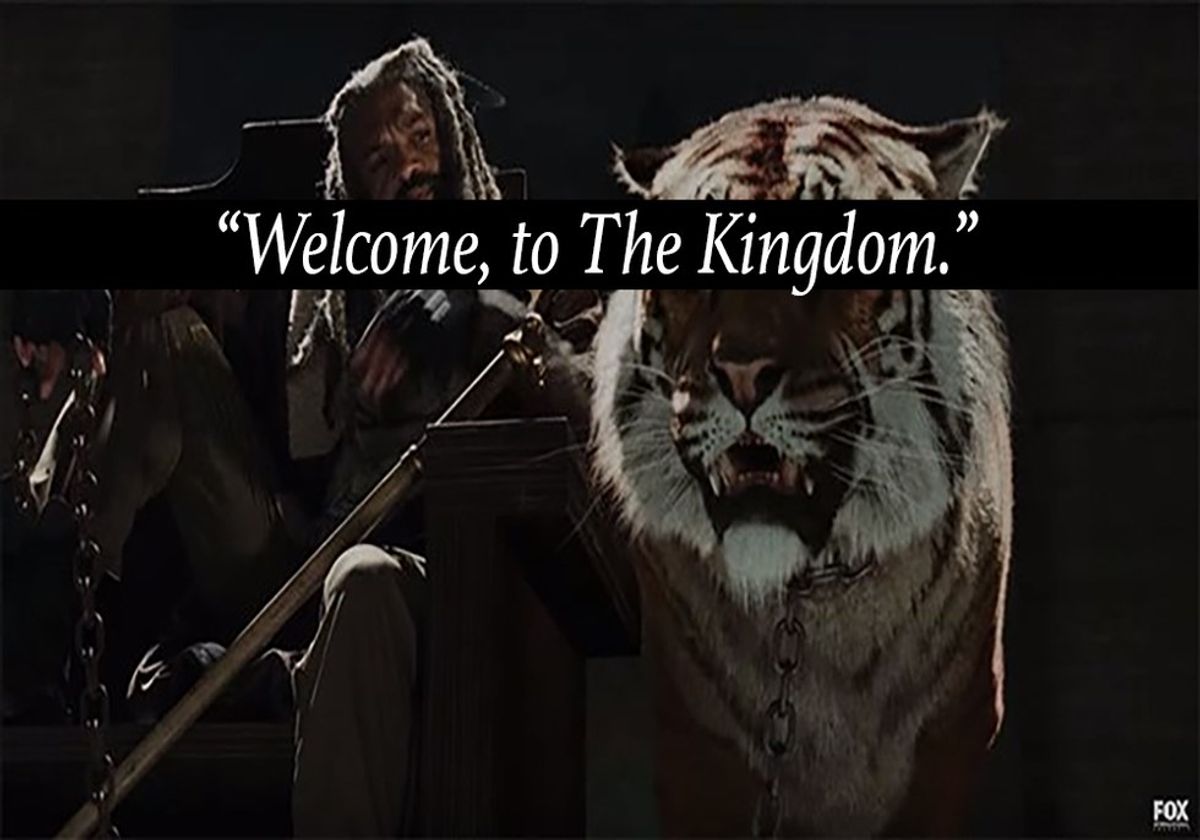 We are introduced to Ezekiel, Shiva, and a new community-- The Kingdom. Exposure to The Kingdom reminds us that not every group functions the same as the Alexandria Safe Zone.