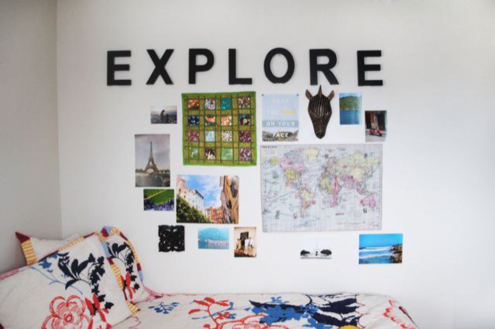 Tape a large map to the wall, put one of your over-sized travel books on display and clutter your room with knickknacks from around the world. Print out some pictures of places you'd like to visit and make a collage. This doubles as some travel inspiration and makes your dorm a little less dull. For added world explorer eye candy (or for a pretentious flare), eschew cliche destinations like the Eiffel tower, Big Ben or the Great Wall of China. Ditch those in favor of sites you personaly want to go. Like all those places you've learned about while reading.
