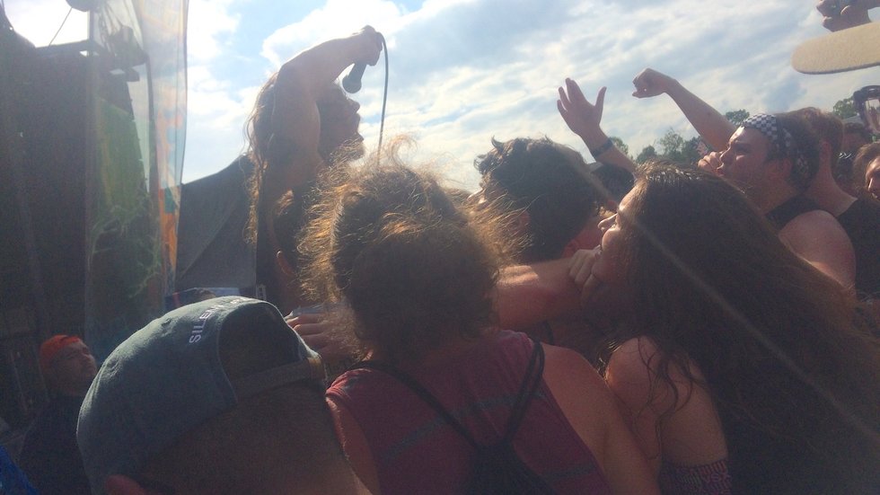 I had to leave my first Warped Tour sick because I ate a pulled pork sandwich while watching a band and then realized I was late to my next show. I ran to the stage and moshed. Please leave at least an hour in-between eating and going to see the next band. This could be a great chance to walk around and look at tents.