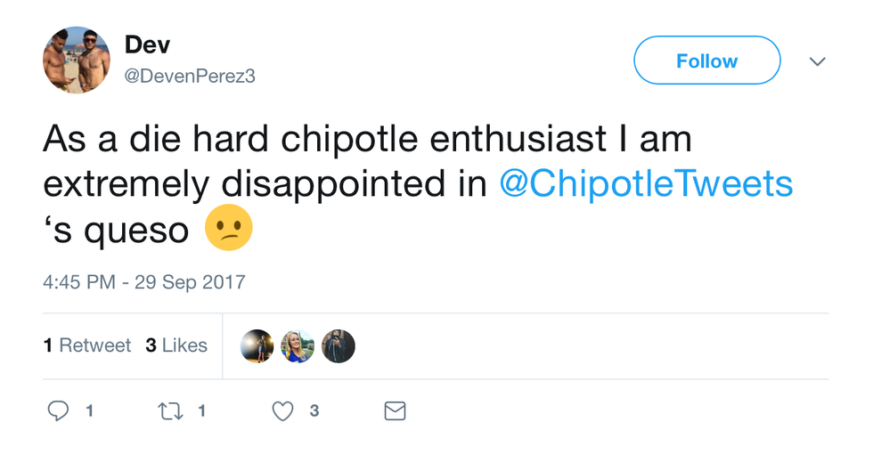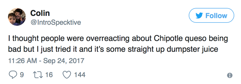 Only 15% of orders included queso now, and after the first week of the big release, queso-related traffic started to diminish. But this has not taken a hit to Chipotle's financial state. According to Business Insider, though it hasn't been a massive success, the queso has still boosted sales for the beloved Mexican restaurant even despite the claims that customers are "overwhelmingly unhappy with the final result" and that they "have not met one person who liked it."