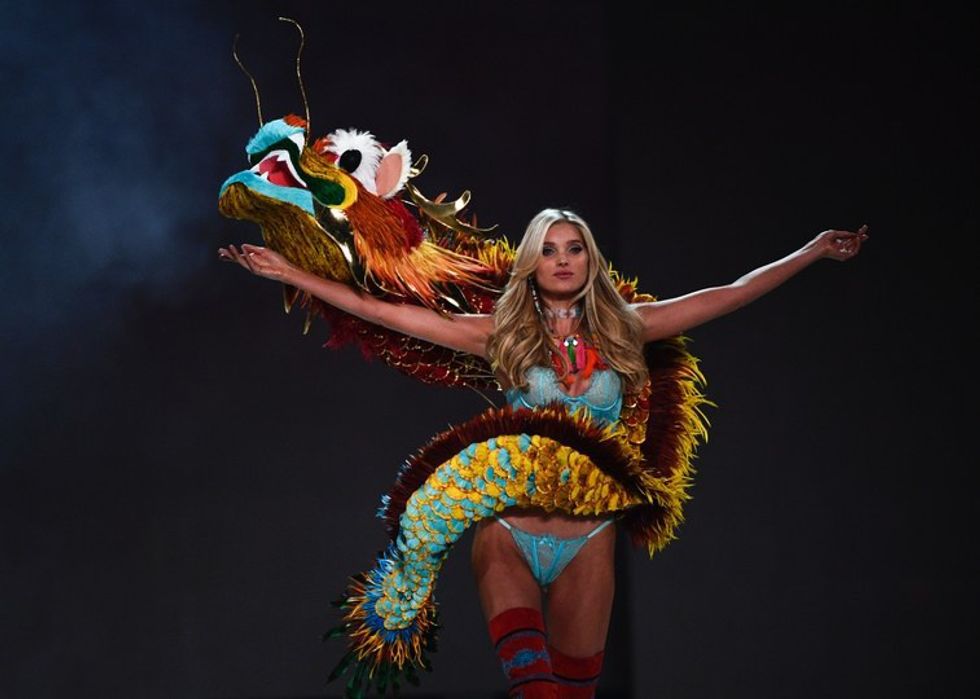 As with everything else in our society, sex sells, and the fashion show objectifies women, using women's bodies to sell their merchandise. Obviously, as a women's lingerie store, then essentially need to use women's bodies to do so, but the ostentatious way it's presented to us is unnecessary. Then, there's also the issue of cultural appropriation in this year's show-- using a white woman to model a Chinese inspired ensemble. This isn't the first time Victoria's Secret has been accused of cultural appropriation, either. In 2012, they were forced to pull Karlie Kloss's Native American inspired look from the show. This year, many are trying to assume this as "multiculturalism", but the Chinese are much more reserved, so how are we using their culture to incorporate it in a racy lingerie fashion show?