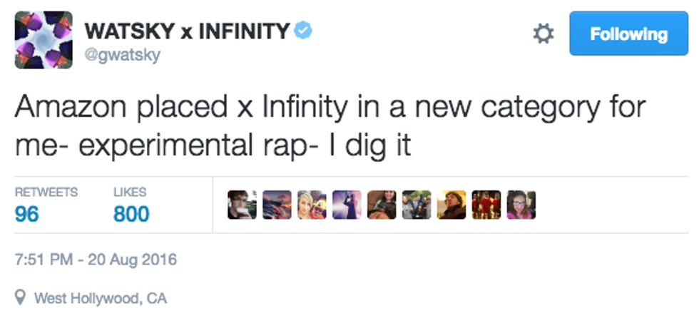 This past week one of the most anticipated albums of the summer dropped, and I'm not talking about Frank Ocean's "Blond." On August 19th, rapper, poet, and now best-selling author George Watsky released his fourth studio album "x Infinity" and it is without a doubt some of his best work to date.